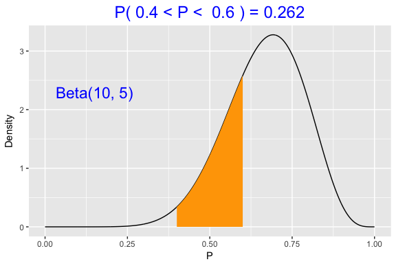beta_area displays a beta area (probability)beta_area(.4, .6, c(10, 5))