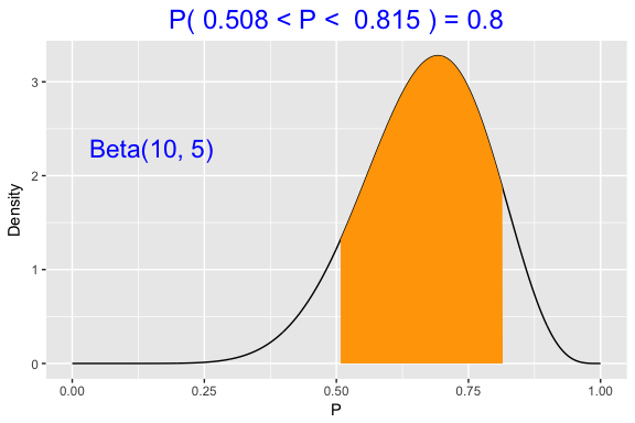 beta_interval displays an equal-tails interval that contains a specific probability contentbeta_interval(.8, c(10, 5))