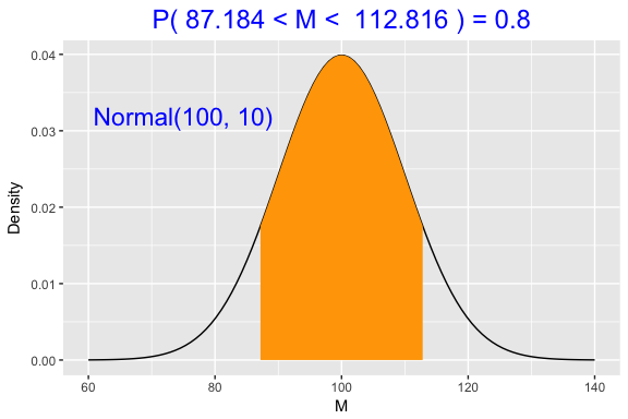 normal_interval will compute an equal tails probability interval.normal_interval(.8, c(100, 10))