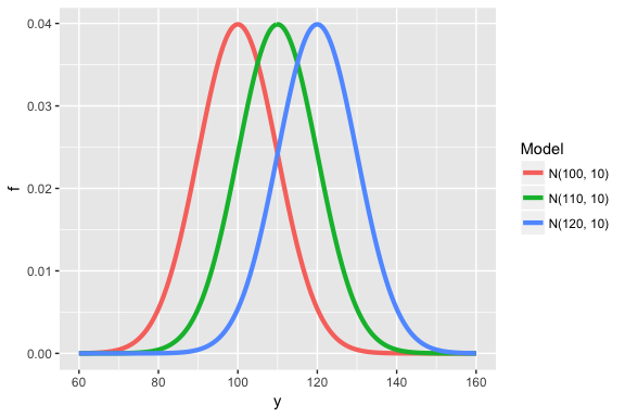 many_normal_plots will display many normal curves on the same graph.many_normal_plots(list(c(100, 10), c(110, 10), c(120, 10)))