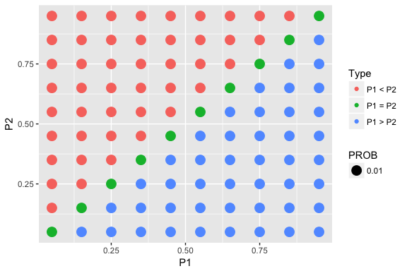 two_proportions.RmdThe TeachBayes package has several functions to facilitate working with a discrete prior for two proportions.