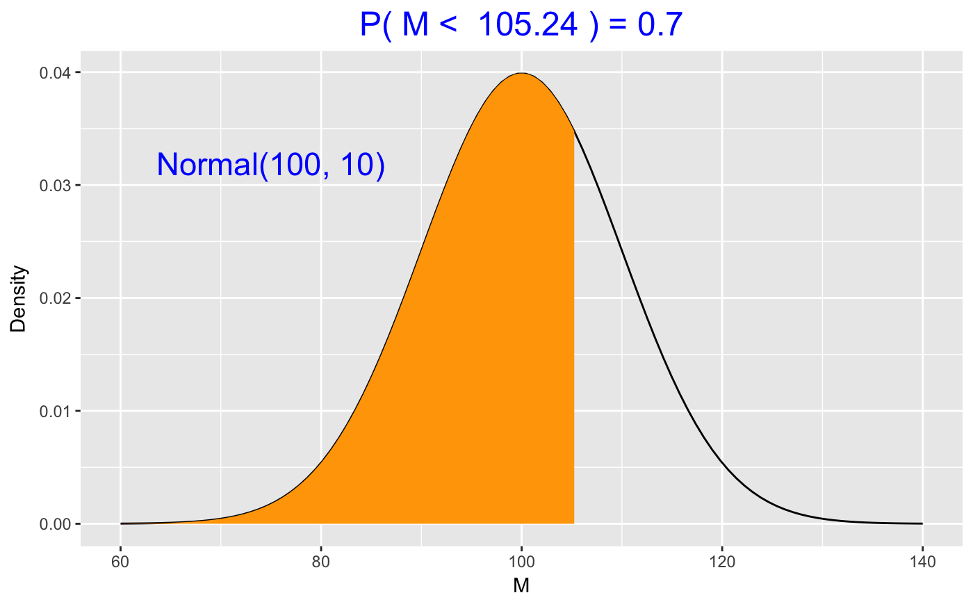 parameters <- c(100, 10) prob_value <- 0.7 normal_quantile(prob_value, parameters)