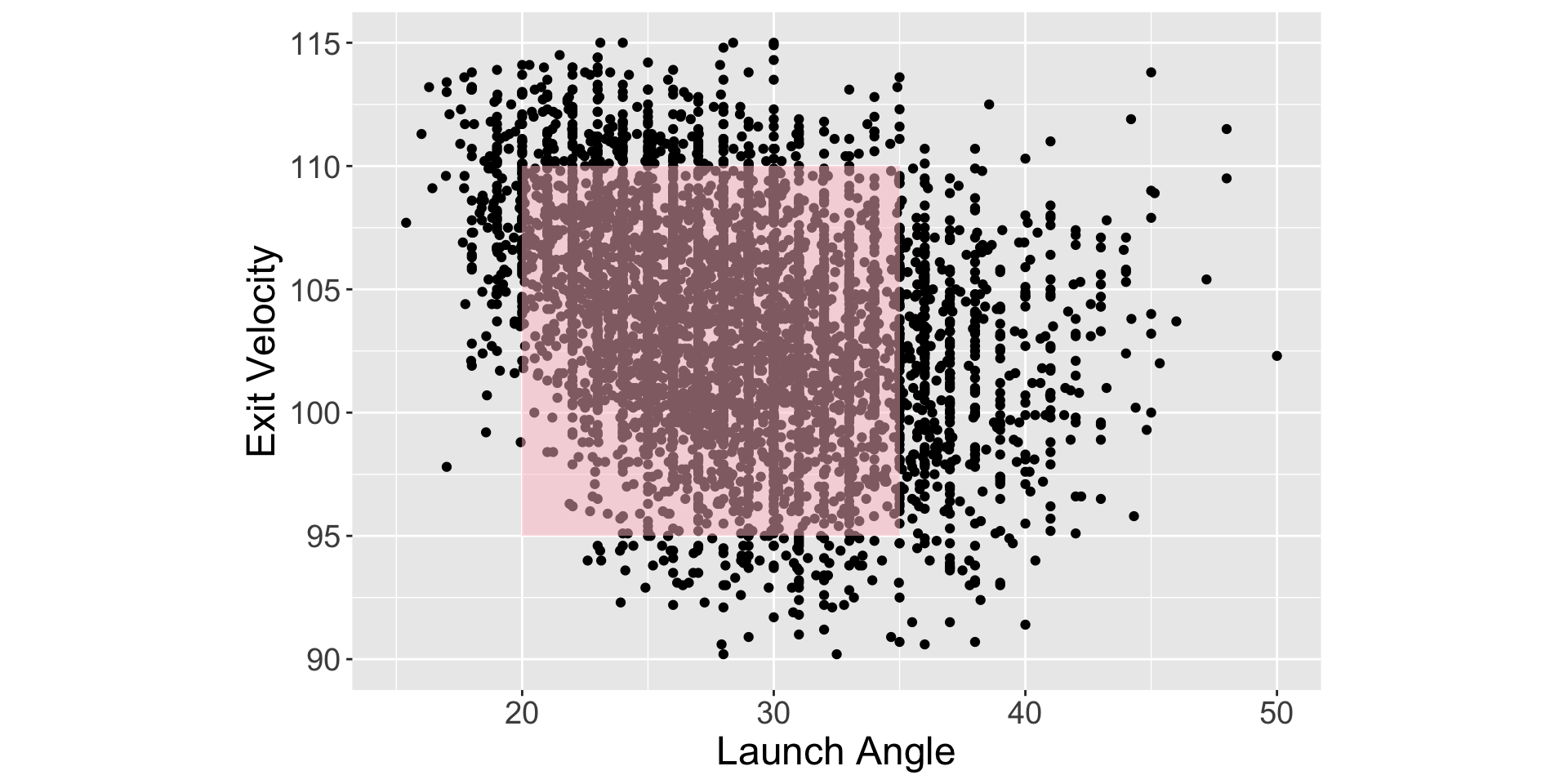 This is especially apparent for exit velocities between 100 and 105 mph.